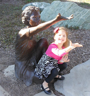 Mom made a quick trip last weekend to TX to take the girls to see the play, Charlotte's Web. It was playing in Fort Worth and we got to town a little early so we went to the Botanical Gardens to walk around and take some pictures. Mom got a new camera so she wanted to try it out on her two favorite models. She got some good ones.